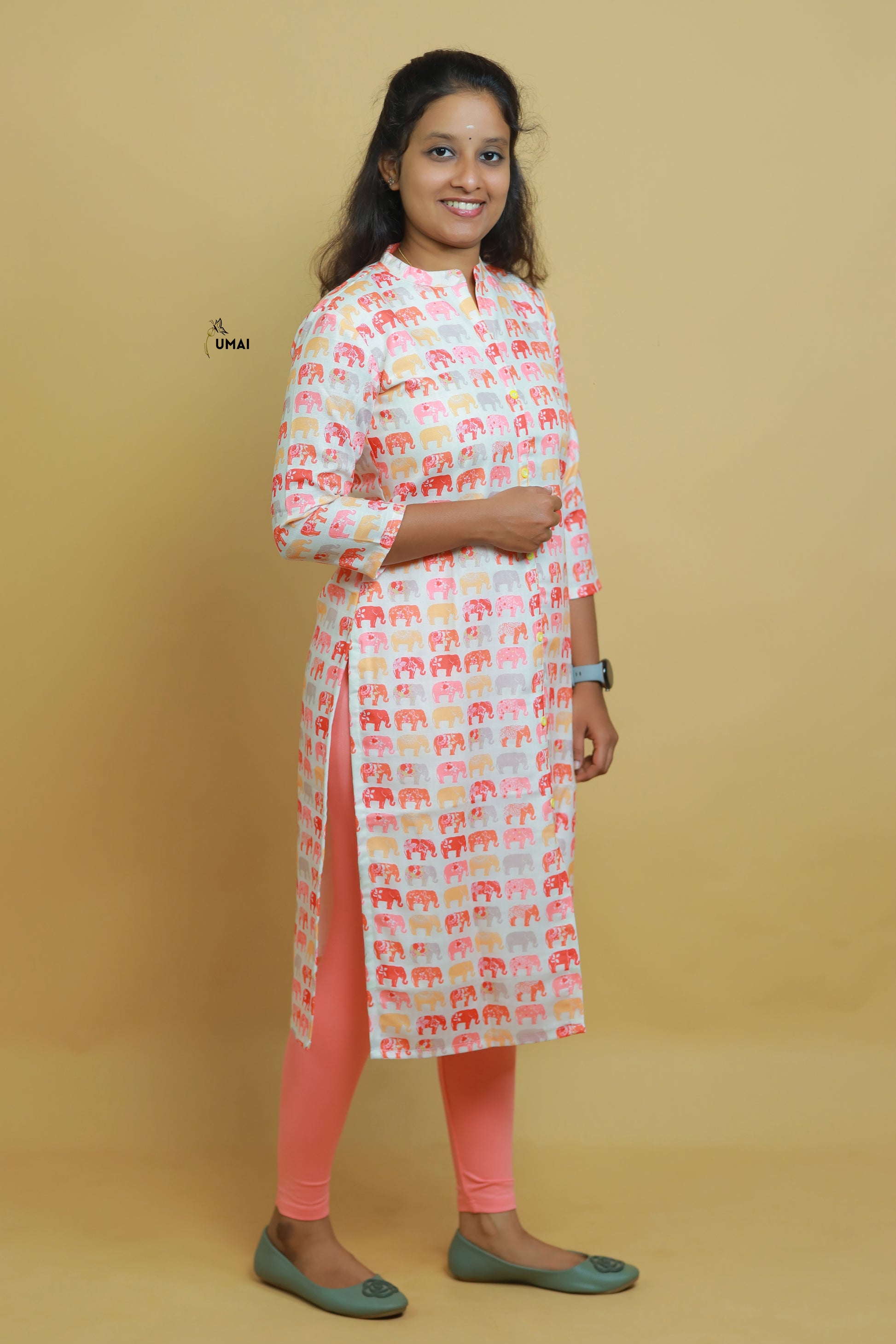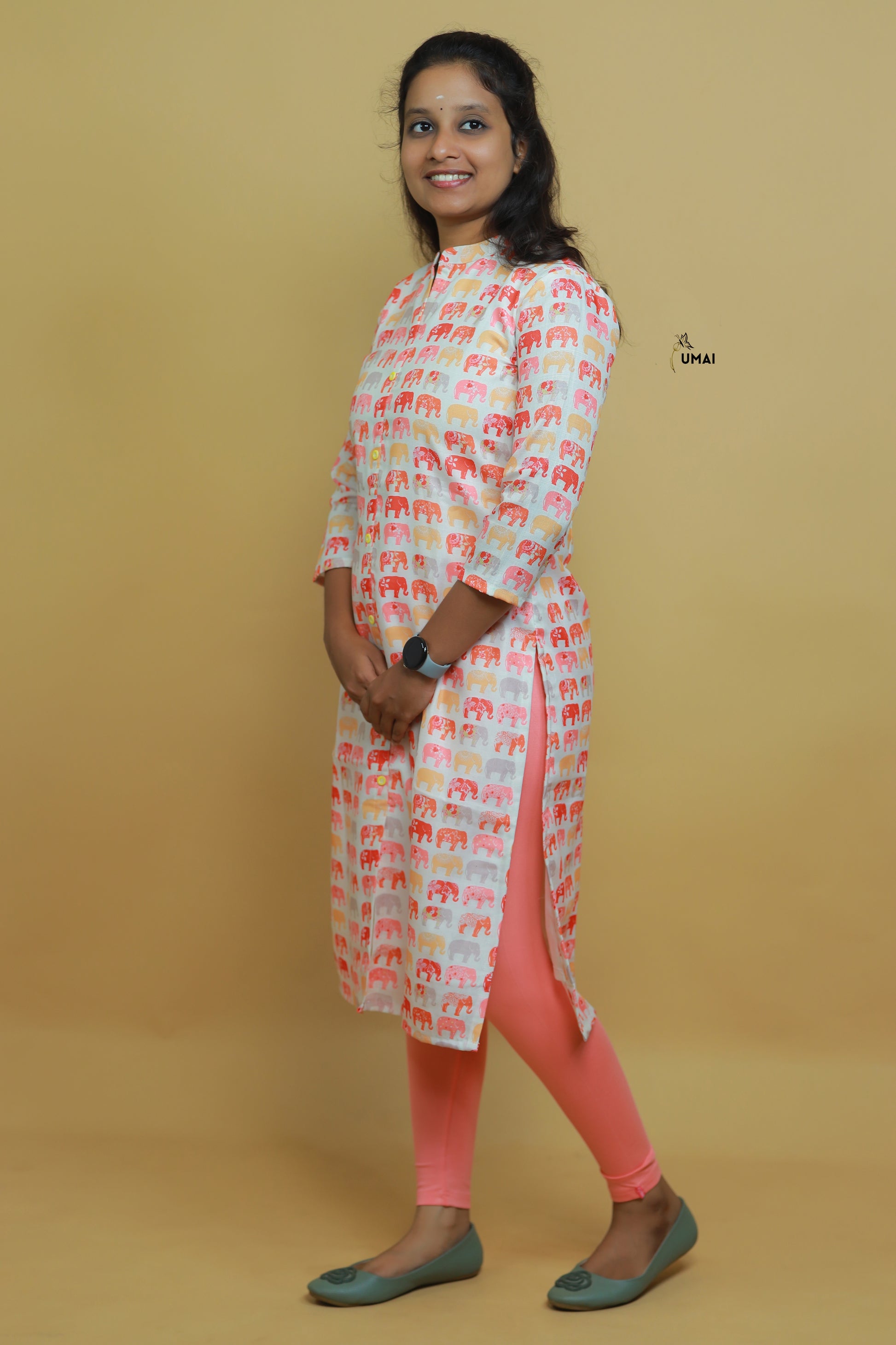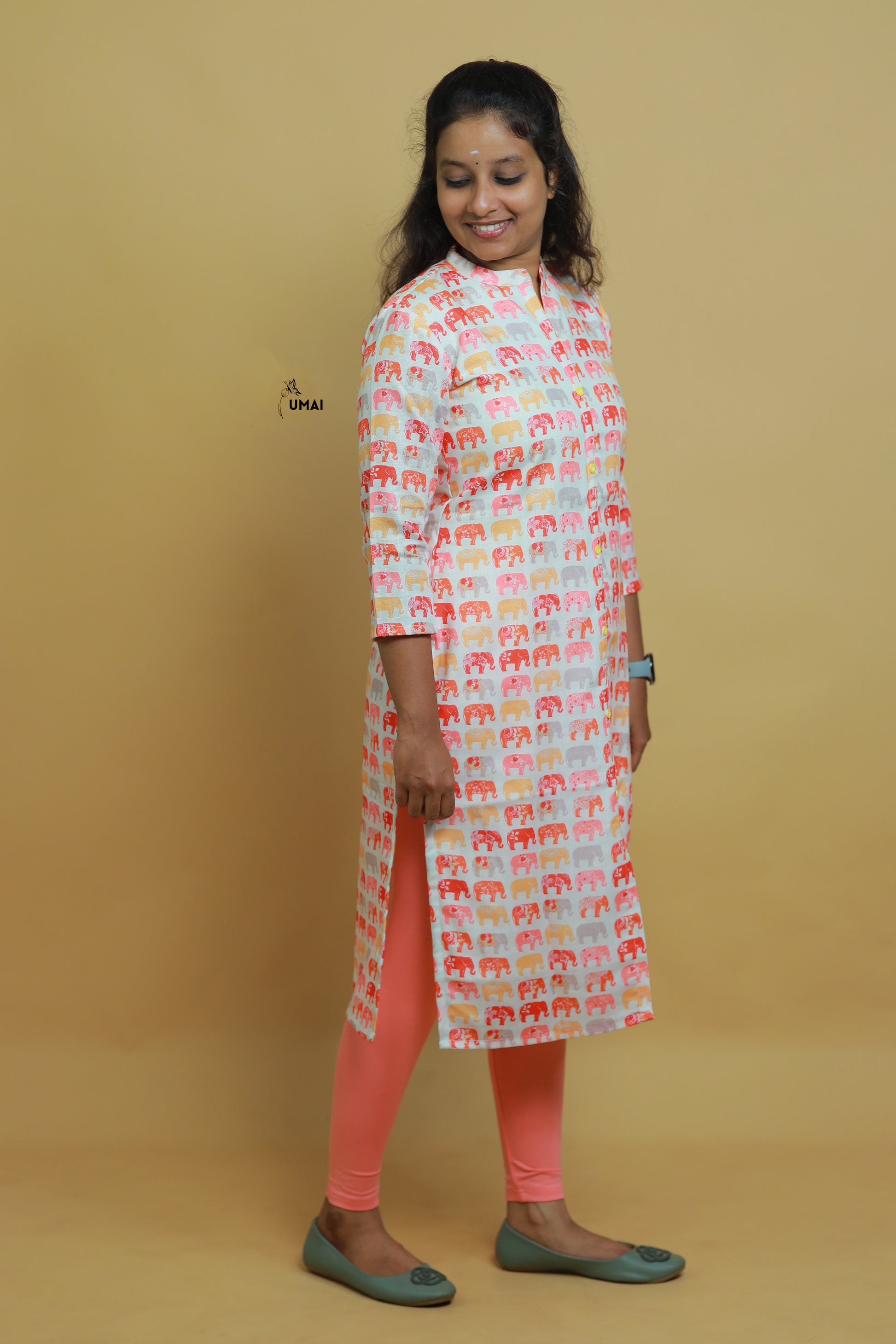 βBring vibrant energy with this stunning kurti featuring elegant elephant motif in different hues of vermillion, adding richness and depth.βππ₯