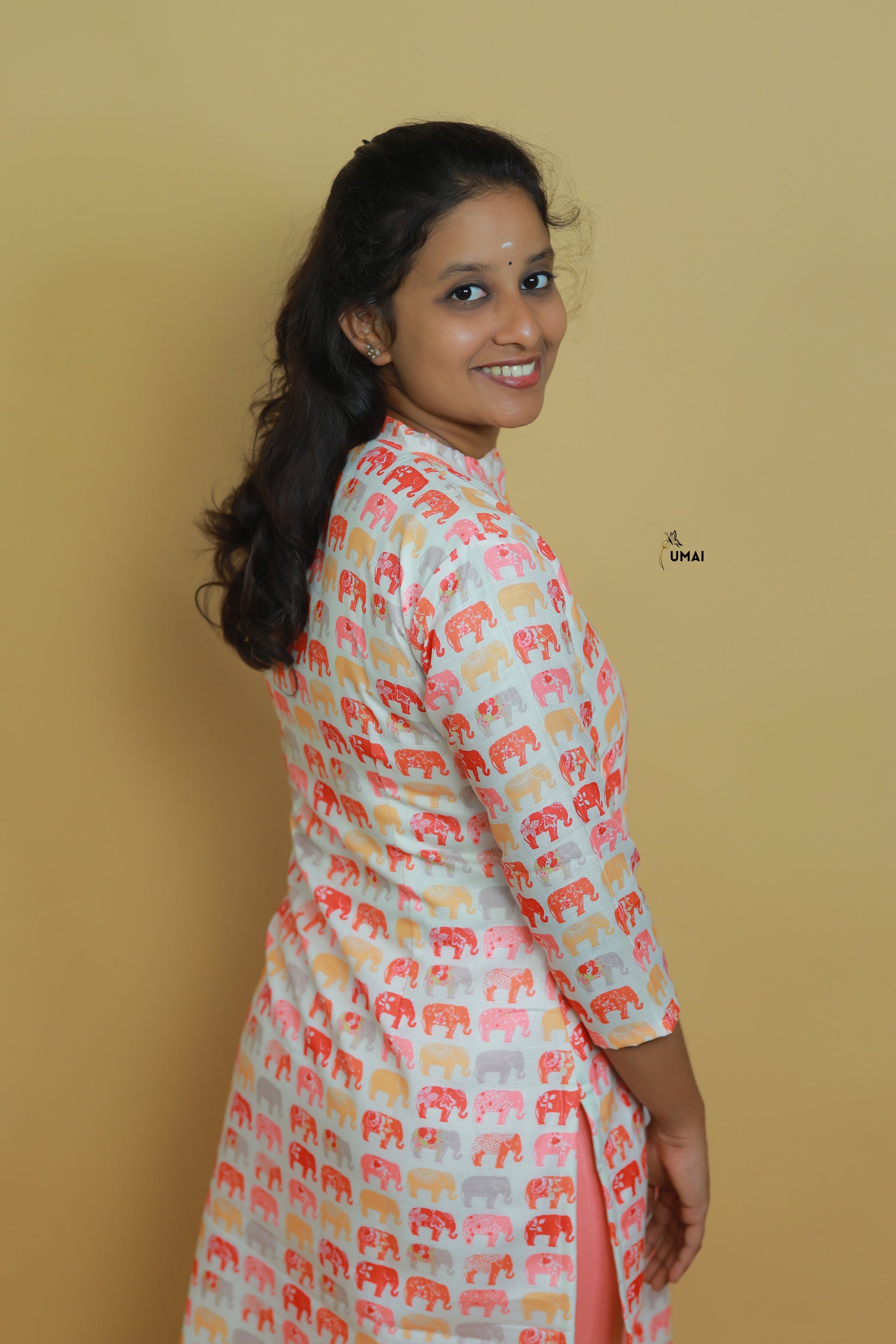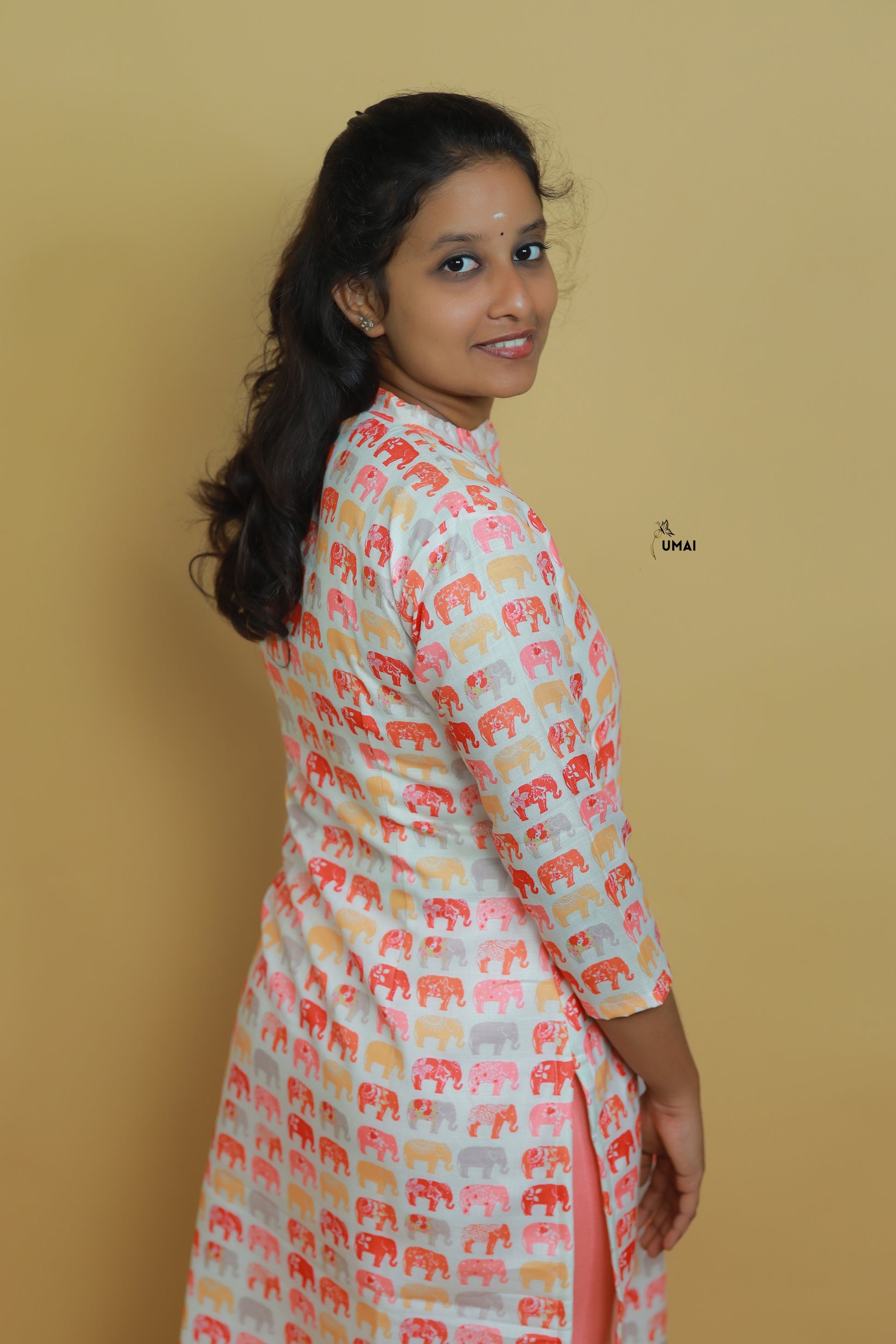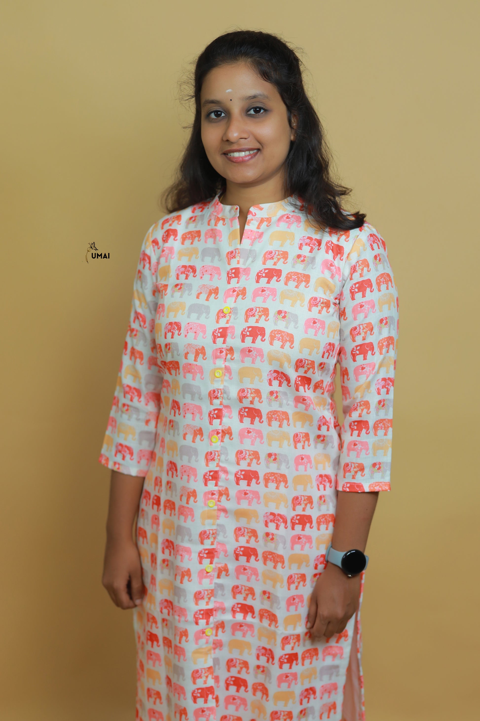 βBring vibrant energy with this stunning kurti featuring elegant elephant motif in different hues of vermillion, adding richness and depth.βππ₯